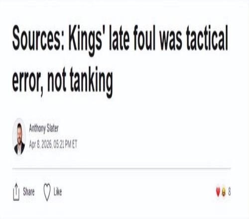 北京时间4月9日,据名记Shams报道,NBA已经对国王展开调查,调查内容是他们在昨日对勇士的比赛中故意犯规生涯罚球...