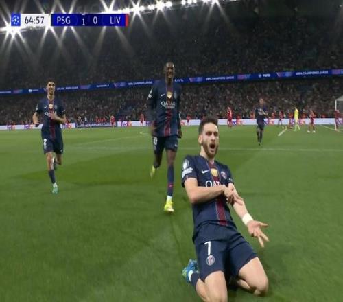 此役主场对阵利物浦,克瓦拉茨赫利亚在下半场打入一球,帮助巴黎取得2-0领先。